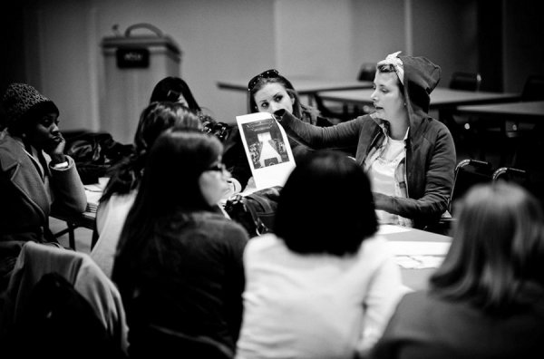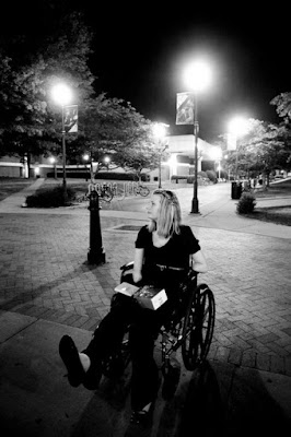 Επιστρέφει στην πανεπιστημιούπολη VCU, όπου ήταν φοιτήτρια merchandising μόδας πριν από ένα χρόνο, και εξετάζει τα έργα που βρίσκονται σε εξέλιξη από άλλους φοιτητές.