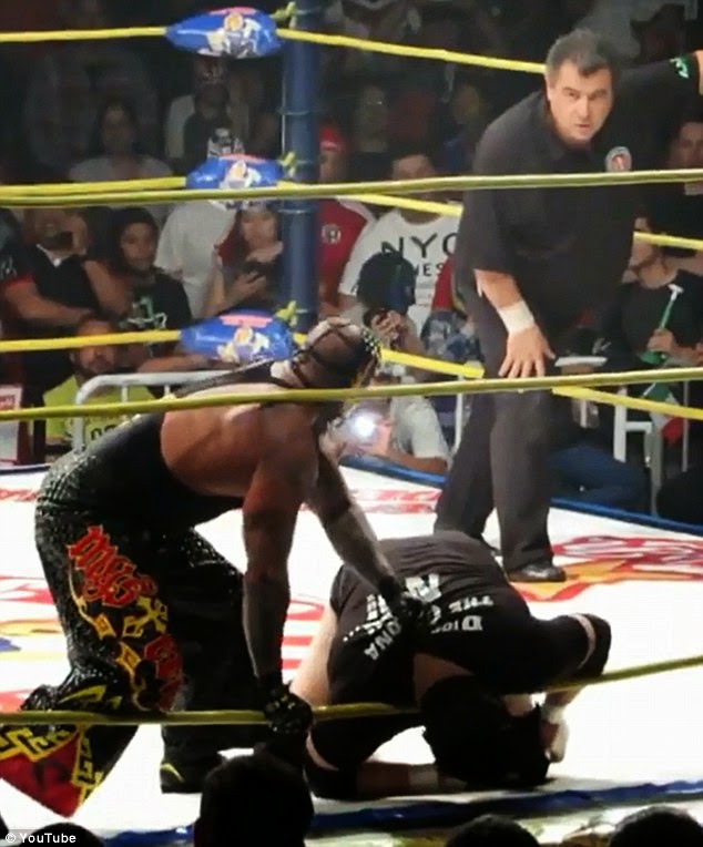 Ο 35χρονος άνδρας όταν δέχτηκε το χτύπημα από τον γνωστό από τη θητεία του στο WWE, Ρέι Μιστίριο, έπεσε ζαλισμένος πάνω στα σχοινιά.