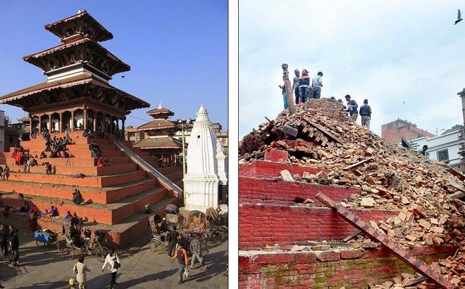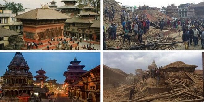 Στην Κατμαντού, την πρωτεύουσα του Νεπάλ, εκατοντάδες κτίρια κατέρρευσαν. Μια ομάδα διασωστών, με επικεφαλής τον αξιωματικό Σάντος Νεπάλ, προσπαθούσε όλη τη νύχτα να ανοίξει δίοδο σε ένα από τα κτίρια αυτά. Ήταν όμως αναγκασμένοι να σκάβουν με τα χέρια και με εργαλεία χειρός γιατί είναι αδύνατον να περάσουν βαριά μηχανήματα, όπως μπουλντόζες, από τα σοκάκια της αρχαίας πόλης. "Πιστεύουμε ότι υπάρχουν παγιδευμένοι μέσα", είπε ο Σάντος δείχνοντας τα ερείπια της τριώροφης κατοικίας.