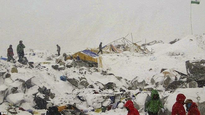 Στον καταυλισμό βάσης του όρους Έβερεστ, όπου εγκλωβίστηκαν εκατοντάδες ορειβάτες μετά τη χιονοστιβάδα που προκλήθηκε από τον σεισμό, έχουν εντοπιστεί και ανασυρθεί 17 πτώματα. Ελικόπτερα κατάφεραν να προσγειωθούν στο σημείο νωρίς σήμερα το πρωί, μετά τη βελτίωση των καιρικών συνθηκών, και να παραλάβουν τους πρώτους από τους τραυματίες.