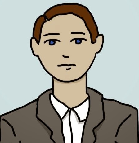Καστανά μαλλιά, μπλε μάτια και φορούσε ένα φαρδύ κοστούμι.