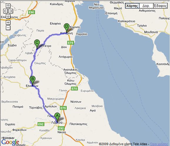 * Μέσω Λαρίσης - Τυρνάβου απέχει από την Αθήνα 370 χλμ.