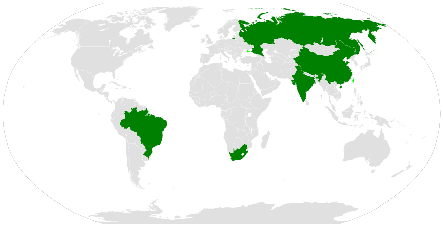 Στις 16 Ιουνίου 2009, οι ηγέτες των χωρών BRIC (των μετέπειτα BRICS) πραγματοποίησαν την πρώτη σύνοδο κορυφής στο Αικατερίνμπουργκ (Ρωσία) κατά την οποία εξέδωσαν δήλωση με την οποία ζητούσαν τη δημιουργία μιας «δίκαιης, δημοκρατικής και πολυπολικής παγκόσμιας τάξης». Το 2012, οι πέντε χώρες BRICS αντιπροσώπευαν έναν πληθυσμό σχεδόν τριών δισεκατομμυρίων ανθρώπων, με συνδυασμένο ονομαστικό ΑΕΠ 13,7 τρις $, και ένα εκτιμώμενο σύνολο 4 τρις $ σε συναλλαγματικά αποθεματικά.