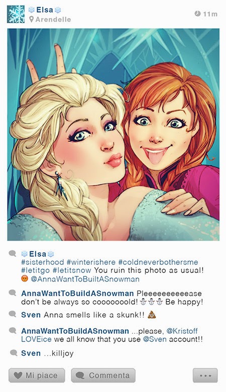 Σειρά εικονογραφήσεων του ταλαντούχου Ιταλού καλλιτέχνη Simona Bonafini δείχνει χαρακτήρες της Disney να δημοσιεύουν στους Instagram λογαριασμούς.....: