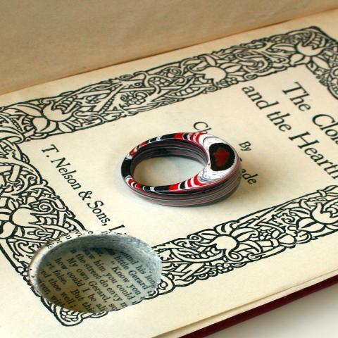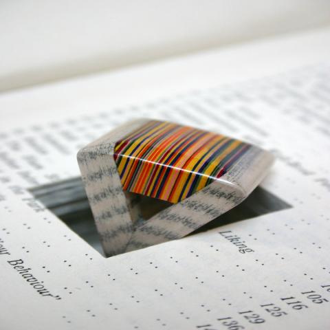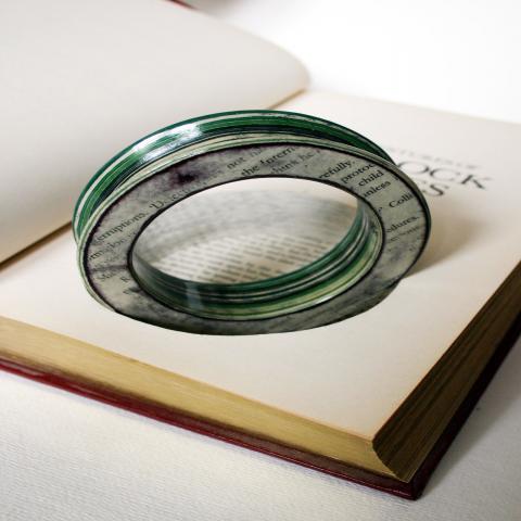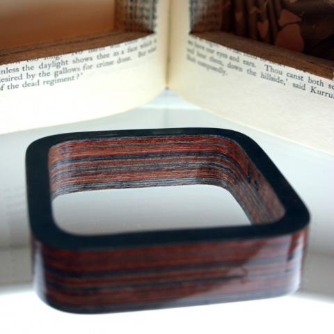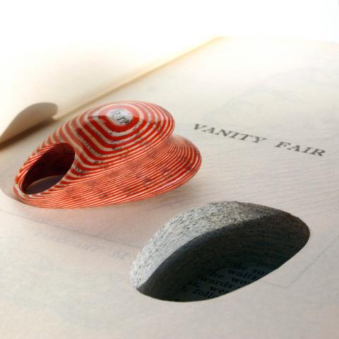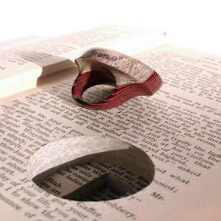 Jeremy May - αποκόπτει σχήματα απο πλαίσια βιβλία, προσεκτικά πλαστικοποιώντας (εκατοντάδες φύλλα χαρτιού μαζί) και στο τέλος-τέλος βγάζει ένα μοναδικό μοτίβο.Κάθε προϊόν έχει "το όνομά του" - το όνομα του βιβλίου από το....