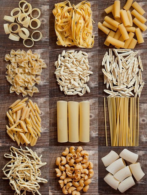 * Ζυμαρικά σε διαφορετικές μορφές, αλλά οπωσδήποτε σπαγγέτι, πένες ριγκάτι, λινγκουίνι και φαρφάλες