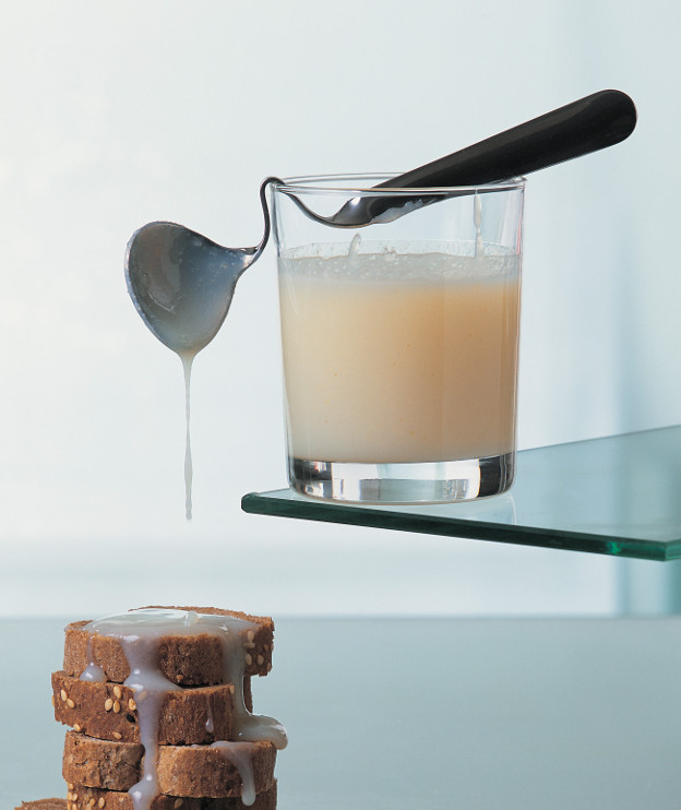 Σε μια κατσαρόλα βάζουμε το γάλα, τη μαστίχα, τη γλυκόζη και τη ζάχαρη και τα τοποθετούμε σε αρκετά χαμηλή φωτιά.