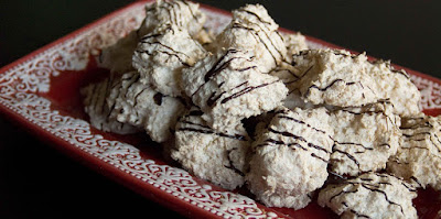 Στη συνέχεια ανακατεύουμε τη ζάχαρη άχνη με την καρύδα και προσθέτουμε λίγο-λίγο στη μαρέγκα ανακατεύοντας απαλά για να μην κάτσει η μαρέγκα αλλά ούτε να σβολιάσει ή να αραιώσει. Τοποθετούμε με κουτάλι της σούπας ή του γλυκού στο χαρτί ψησίματος και ψήνουμε 15-20 λεπτά.