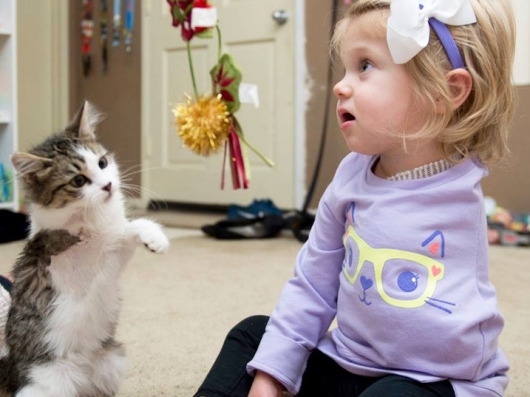 Το κοριτσάκι έχασε το χέρι του από καρκίνο και υιοθετεί ακρωτηριασμένο γατάκι!