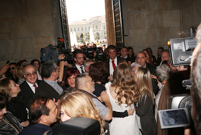 Ο Κώστας Βουτσάς ανεβαίνει τα σκαλιά του… Δημαρχείου Αθηνών με την αγαπημένη του Αλίκη Κατσαβού.