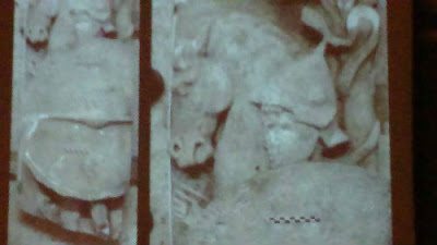 Αυτό ανακοινώθηκε σήμερα από τα χείλη των επικεφαλής της διεπιστημονικής ομάδας των ανασκαφών στον περίφημο τύμβο της Αμφίπολης, στο πλαίσιο 29ης Επιστημονικής Συνάντησης για το Αρχαιολογικό Έργο στη Μακεδονία και τη Θράκη, που πραγματοποιείται από την Πέμπτη (03/03) στην αίθουσα τελετών του παλαιού κτηρίου της Φιλοσοφικής Σχολής του Αριστοτελείου Πανεπιστημίου Θεσσαλονίκης. Συγκεκριμένα, όπως αποκάλυψαν ο αρχιτέκτονας, Μιχάλης Λεφαντζής, και ο διεθνούς φήμης Ιταλός αρχαιολόγος, Αντόνιο Κόρσο, στην περιοχή περιμετρικά του ταφικού μνημείου της Αμφίπολης, η ανασκαφική ομάδα εντόπισε ευμεγέθη μαρμάρινα μέλη, στελέχη παράστασης που απεικονίζουν το προφίλ ενός πολεμιστή, «πιθανού υψηλόβαθμου αξιωματικού». Αυτό κρατά έγχρωμη ασπίδα, η οποία έφερε πάνω της την αιχμή ενός δόρατος, που όπως εκτίμησαν αφορά τη γνωστή μακεδονική Σάρισα. Δίπλα στον στρατιώτη, εμφανίζεται το κεφάλι ενός αλόγου, ενώ διακρίνεται και ένα φίδι τυλιγμένο σε κορμό δένδρου να εφάπτεται στην απόληξη του κράνους του στρατιώτη. Ακόμη, εντοπίστηκαν διάσπαρτα κομμάτια από πόδια αλόγου. Το σωζόμενο μέλος έχει ύψος 1,60 μ. και εκτιμάται ότι έφθανε συνολικά τα 2,70 μ. Εικάζεται ότι τα μέλη αυτά ήταν τοποθετημένα στον χώρο όπου βρισκόταν η κιβωτιόσχημη θήκη. Σύμφωνα με τον κ. Λεφαντζή, η όλη παράσταση παραπέμπει σε νεκρική πομπή, η οποία «μάλλον», όπως είπε, αποτελείται από πεζεταίρους (μέλη επίλεκτου σώματος του Μακεδονικού στρατού). «Μια πομπή που συνδέει τον κόσμο νεκρών με αυτόν των ζωντανών, μια πομπή που αφορά έναν ήρωα», σημείωσε ο ίδιος. Εξήγησε, δε, ότι το φίδι που διακρίνεται αποτελεί ενδεχομένως αναφορά στον Δία. Το συγκεκριμένο ανάγλυφο εκτιμάται πως βρισκόταν στη βάση του βάθρου επί του οποίου ήταν ο Λέοντας της Αμφίπολης, στην κορυφή του τύμβου.