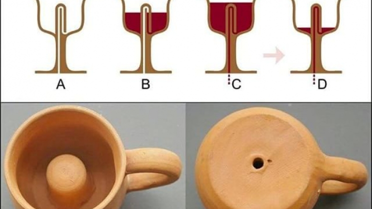 Ωστόσο, αρκεί μία παραπάνω σταγόνα για να ξεπεράσει τα όριο της γραμμής και τότε η κούπα να... αδειάσει, χύνοντας όλο το κρασί από τη βάση της.