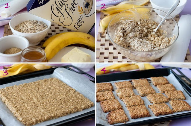 Λιώνουμε τις μπανάνες και ανακατεύουμε μαζί με τις νιφάδες βρώμης.