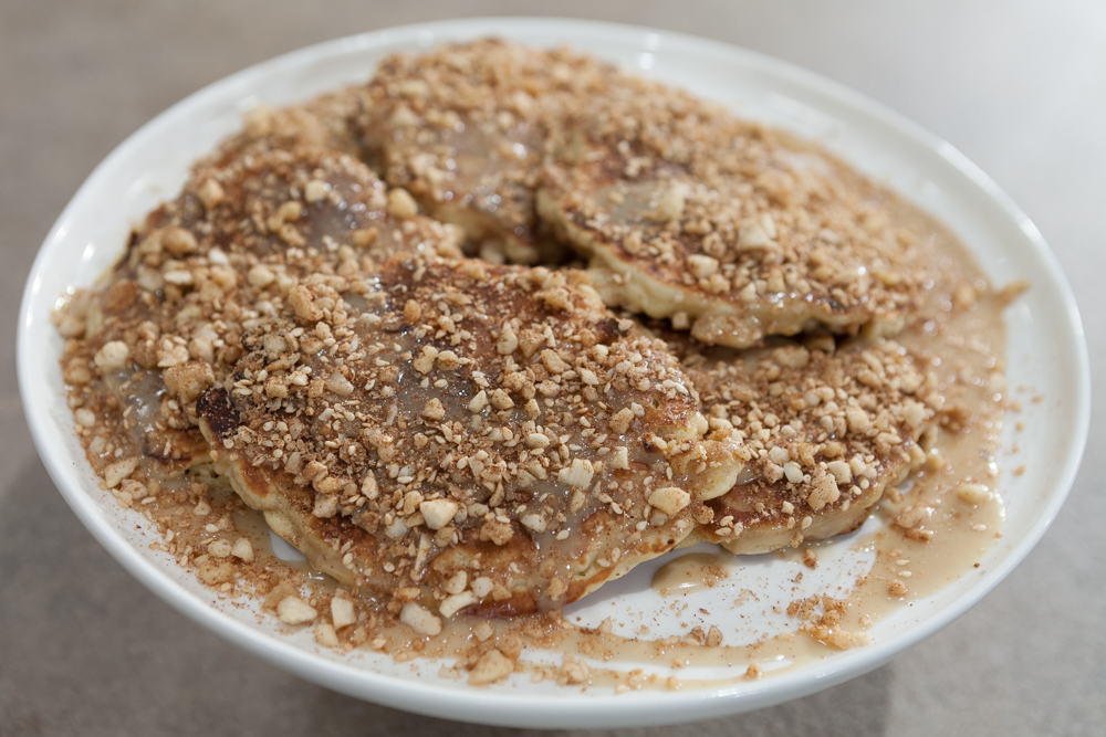 Αφήνουμε λίγα λεπτά να ψηθεί από κάτω, μέχρι να σχηματιστούν φουσκάλες, τις γυρίζουμε από την άλλη πλευρά και τις τηγανίζουμε για άλλα 2 λεπτά περίπου, μέχρι να πάρουν χρυσαφί χρώμα. Επαναλαμβάνουμε τη διαδικασία μέχρι να τελειώσει το μείγμα.