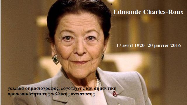 Edmonde Charles-Roux, γαλλίδα δημοσιογράφος, λογοτέχνης και σημαντική προσωπικότητα της γαλλικής αντίστασης