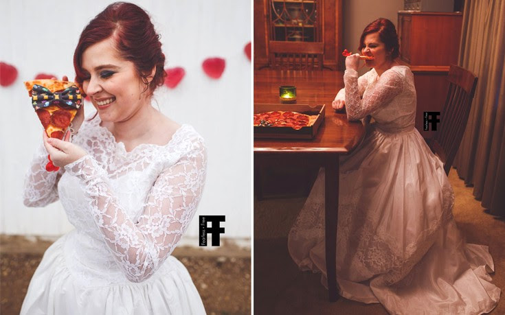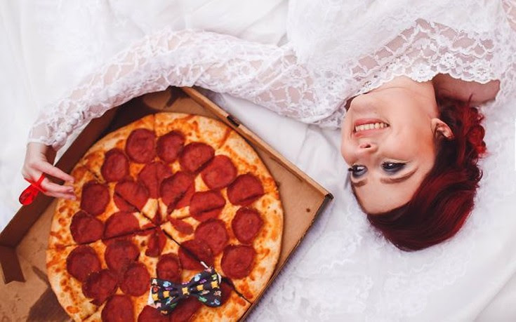 «Φοράω το νυφικό της γιαγιάς. Παντρεύομαι με μια πίτσα. Συγγνώμη παιδιά, σας πρόλαβαν».