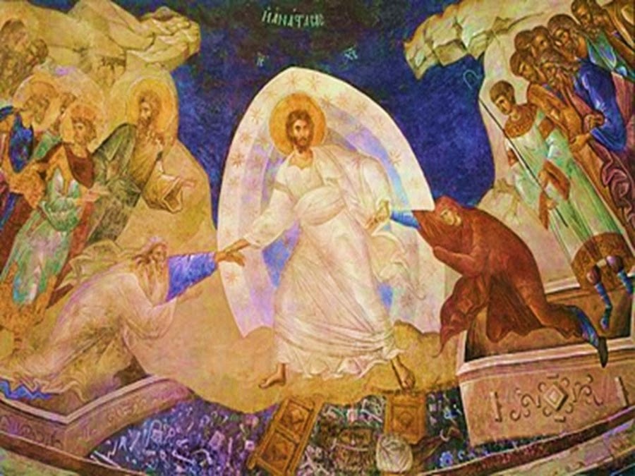 Το σώμα του Χριστού έχει ταφεί, χωρίς όμως να γνωρίζει την φθορά που γνωρίζουν όλοι οι νεκροί, καθώς παραμένει ενωμένο με την θεότητα, ενώ η ψυχή του Χριστού βρίσκεται στην κόλαση, στο χώρο του θανάτου, όπου κηρύττει την μετάνοια. Ο Θεάνθρωπος Χριστός ολοκληρώνει το έργο της Θείας Οικονομίας, που είναι η ανάσταση όλης της Δημιουργίας και όλων των ανθρώπων, κι αυτών που ήταν εν ζωή, αλλά και αυτών που είχαν πεθάνει πριν τον ερχομό του Ιησού στον κόσμο. Ο έσχατος εχθρός του ανθρώπου, ο θάνατος, νικιέται δια του θανάτου του Χριστού, και όλα κινούνται στην προσδοκία της Ανάστασης, της γνήσιας ελευθερίας.