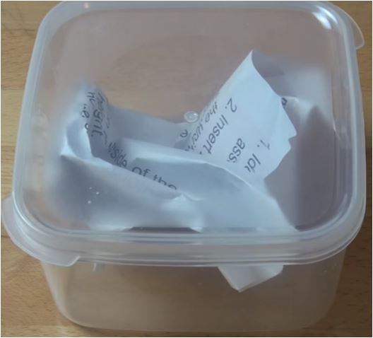 Το μόνο που χρειάζεται να κάνετε είναι να τσαλακώσει ένα κομμάτι χαρτί, όπως για παράδειγμα μια απόδειξη, ή ένα απόκομμα εφημερίδας και να το τοποθετήστε μέσα στο πλαστικό που μόλις πλύνατε και να το κλείσετε καλά με το καπάκι. Είναι τόσο απλό!