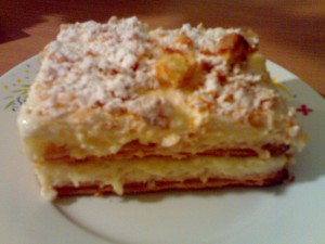 Στη συνέχεια, χτυπάμε την κρέμα και βάζουμε την μισή ποσότητα και από πάνω πάλι μπισκότα (πρωτότυπο ε;) και πάλι την υπόλοιπη κρέμα.
