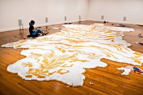 Η Xu Bing, μία από τις πιο γνωστές σύγχρονες καλλιτέχνιδες της Κίνας, έχει δημιουργήσει ένα μοναδικό χαλί τίγρης από 500.000 τσιγάρα!