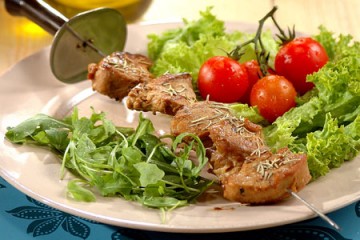 Περνάμε σε σουβλάκια τους κύβους του κρέατος εναλλάξ με κομμάτια κρεμμυδιού.