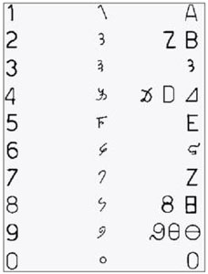 2. Ο αριθμός αυτός παλαιότερα έμοιαζε με τον σημερινό «3» (χωρίς βέβαια να είναι ο ίδιος), είχε δηλ. μία ακόμα μικρή «ουρά» από κάτω. Συνεπώς ήταν το ίδιο ουσιαστικά το γράμμα Β, αποτελούμενος από δύο επάλληλες καμπύλες.