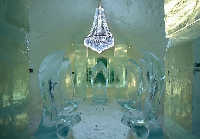 Το περίφημο Ice Hotel, που λιώνει κάθε καλοκαίρι και χτίζεται από την αρχή κάθε χειμώνα, διαθέτει 91 δωμάτια, όλος του ο εξοπλισμός - από τα ποτήρια στο μπαρ έως τις καρέκλες και τα κρεβάτια - είναι επίσης από πάγο, ενώ τα αντικείμενα που θεωρούνται εύφλεκτα είναι τα μαξιλάρια, οι προβιές και οι γούνες των ταράνδων.
