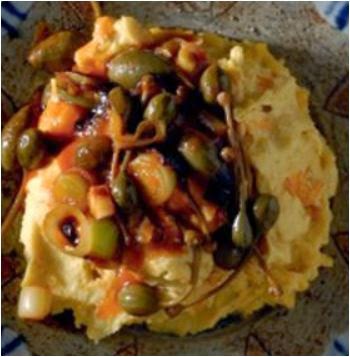 Χρησιμοποιείτε το μείγμα αυτό σαν γαρνιτούρα πάνω από την φάβα και περιχύνετε με λίγο ωμό εξαιρετικό παρθένο ελαιόλαδο.