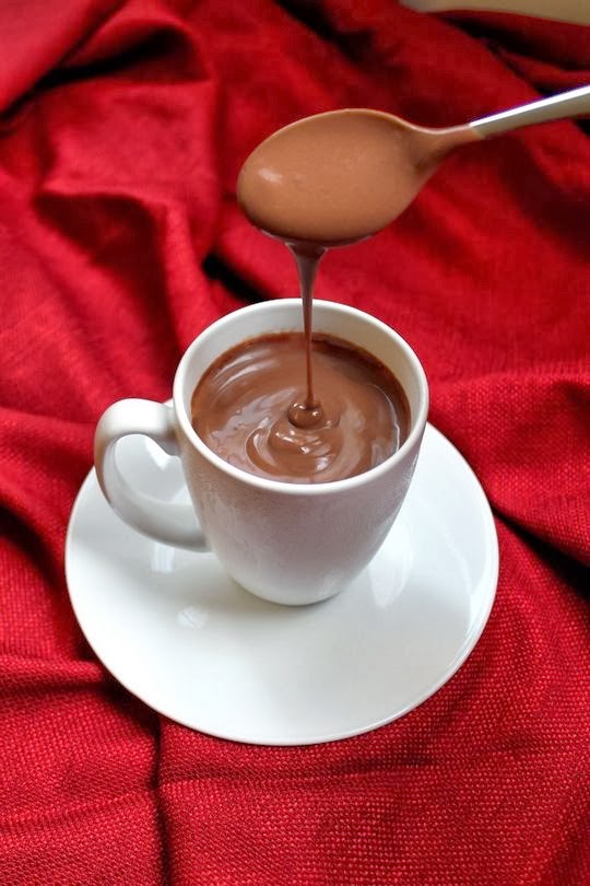 Κοσκινίζεις το κακάο σε ένα κατσαρολάκι και ρίχνεις μαζί του όλα τα υπόλοιπα υλικά. Βάζεις το κατσαρολάκι σε χαμηλή φωτιά και ανακατεύεις διαρκώς μέχρι να λιώσει εντελώς η σοκολάτα. Στη συνέχεια προσέχεις να μην φτάσει το ρόφημα σε βρασμό και το αφήνεις να ζεσταθεί για 15 λεπτά ανακατεύοντας πού και πού και χαμηλώνοντας την φωτιά όποτε χρειάζεται. Σερβίρεις σε κούπες.