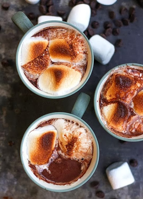 Ακολουθείς την συνταγή για την πηχτή σοκολάτα και απλά στο τέλος προσθέτεις marshmallows ή τα ζαχαρωτά της αρεσκείας σου. Γλύκα στο τετράγωνο...