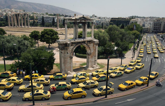 Απεργοί λιθοβολούσαν τα ελάχιστα ταξί που προσπάθησαν να κυκλοφορήσουν σπάζοντας τα τζάμια τους.