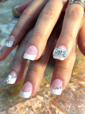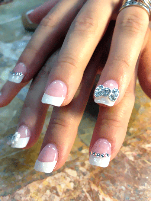 Εκτός από το λευκό βερνίκι, τα strass, τα glitter και τα μεταλλικά στολίδια είναι μερικά από τα υλικά που θα κάνουν νυφικά τα νύχια σας.